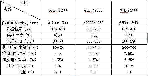 GTL系列料浆分级筛技术参数表: